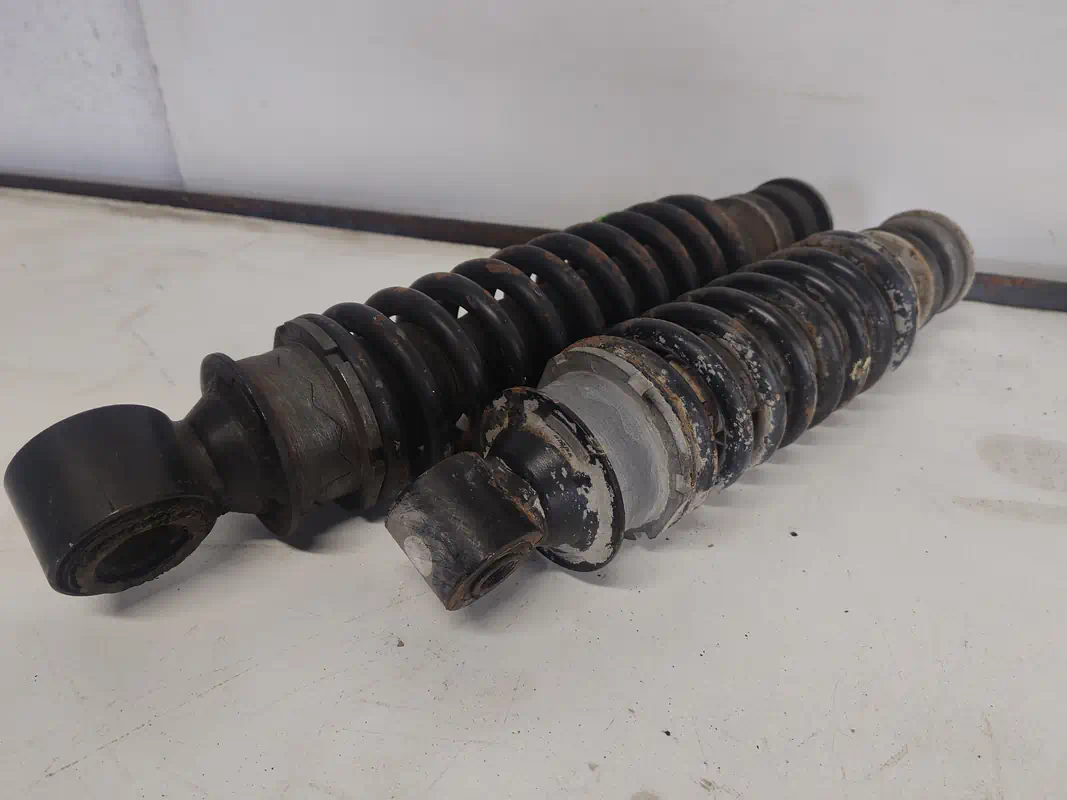Продаємо оригінальні амортизатори кабіни в зборі з пружиною. Деталі зняті з тягачів, пригнаних з Англії/Ірландії. Амортизатори сухі, пружини не просіли, готові до встановлення.